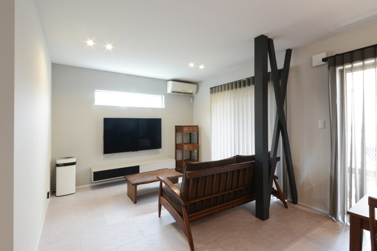 リビングには、構造上どうしても抜くことができない柱がありました。