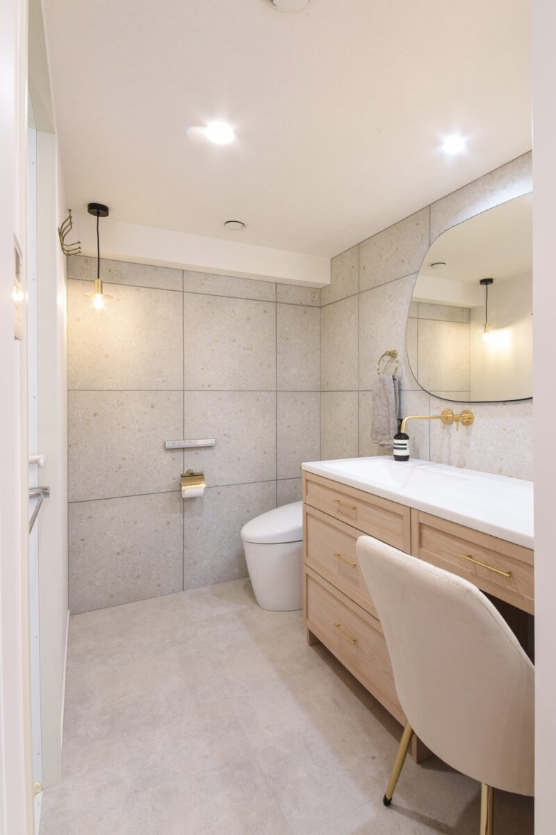 ジャパンディの雰囲気をさらに高めるためには、リビング周りや洗面台の造作(オーダーメイド)が効果的です。
