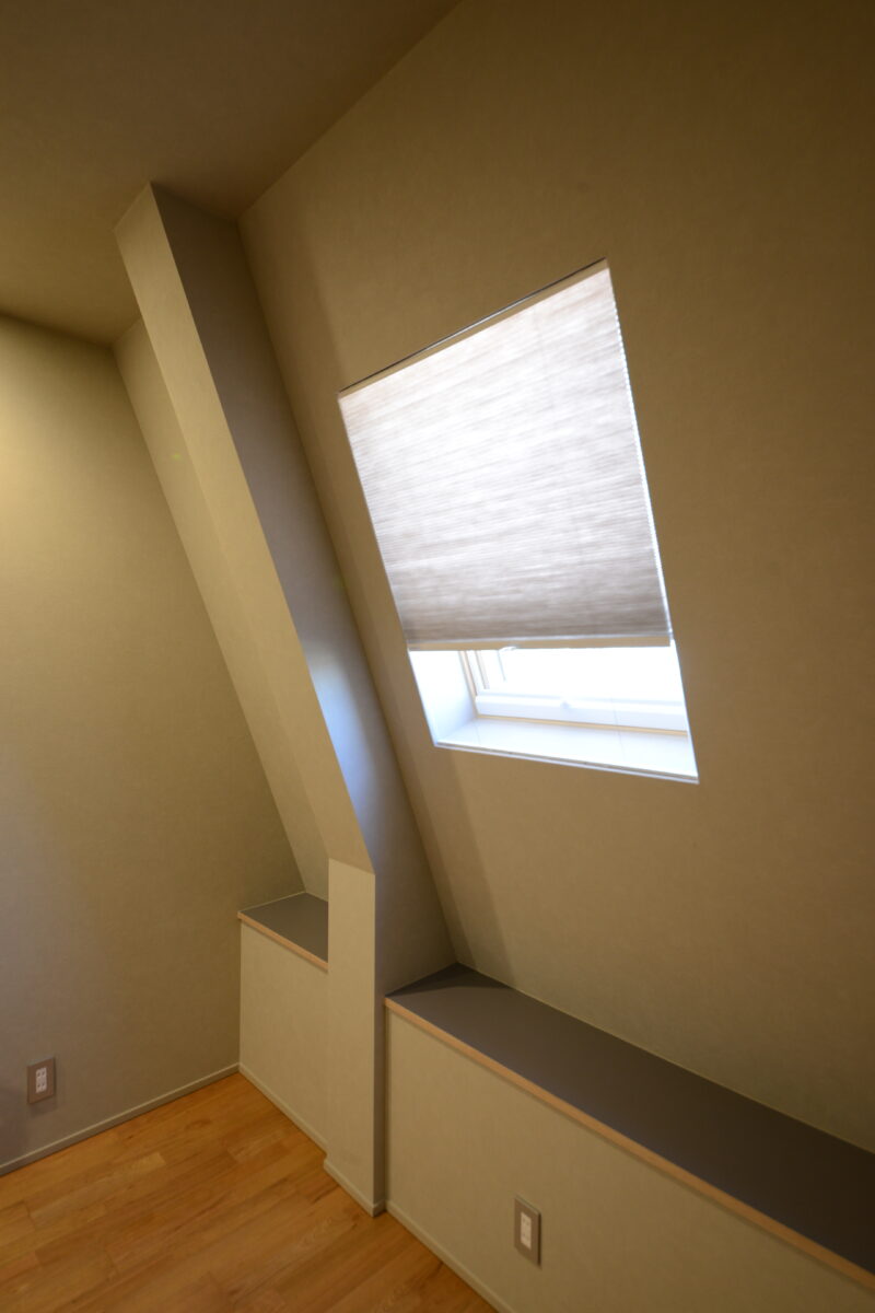 もともと勾配天井だった3階の洋室には、その形状を活かして勾配部分に天窓を新設しました。