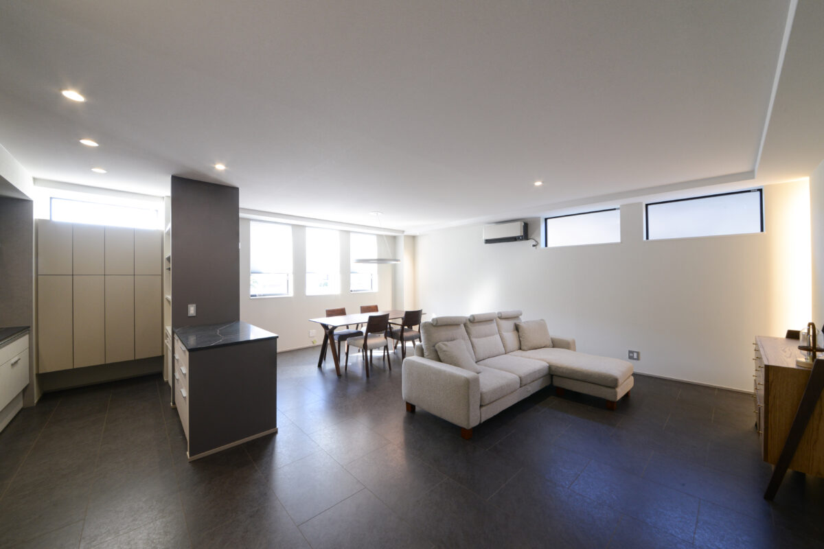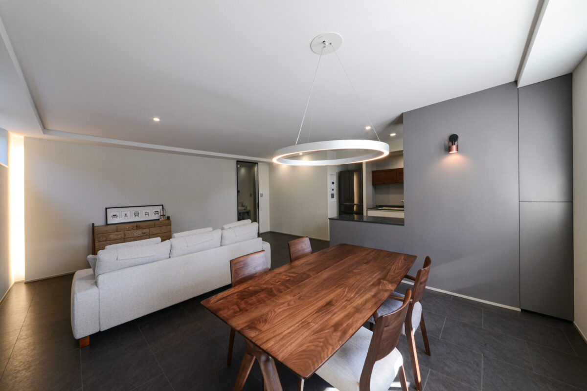 光と素材で魅せる、開放的で上質なリビング空間